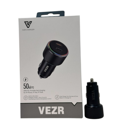 VC01 El adaptador para auto Vezr de 2 puertos y 50W con Power Delivery (PD) es un cargador de alta