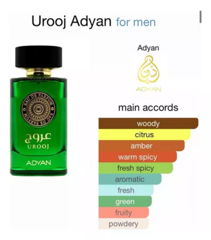 ADYAN UROOJ Diseñada para levantar tu espíritu y encender tu ambición. Con una compleja mezcla de notas cítricas, especiadas y