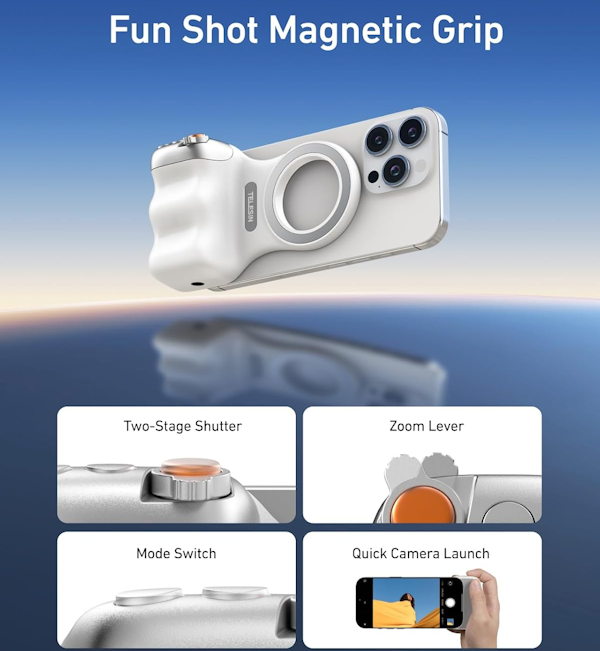 La empuñadura para cámara del teléfono obtuvo la certificación oficial MFI para iPhone. Fácil de acoplar al iPhone. Compra con confianza gracias al reconocimiento y la confirmación oficiales.