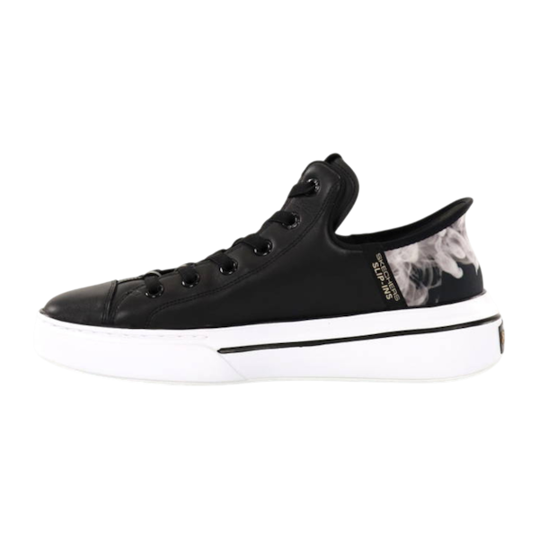 • Cuenta con una parte superior de cuero suave con cordones flexibles y un talón con estampado de humo.