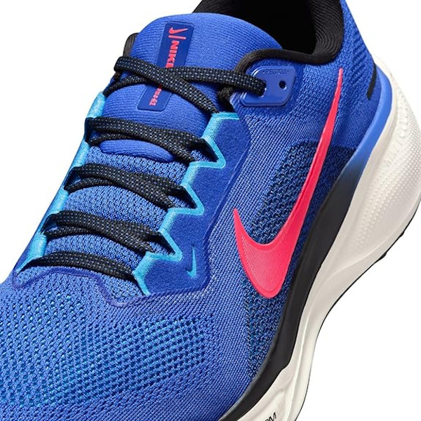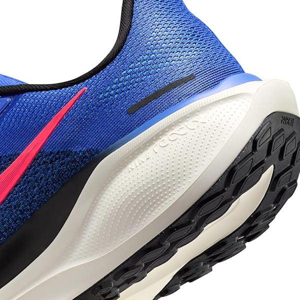 La suela de goma presenta un patrón de gofre que proporciona agarre tanto en superficies secas como mojadas. Las ranuras flexibles proporcionan flexibilidad adicional y garantizan un movimiento suave del antepié. ¡Nike Air Zoom Pegasus 41 es una zapatilla todoterreno que mejorará tu experiencia de carrera!