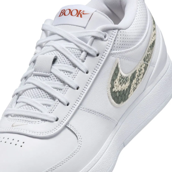 Incluso cuando se encuentra con una serpiente con una mordedura tan venenosa como su jersey de dominadas, Book se mantiene fresco bajo presión. Este diseño especial de Swoosh escamoso se inspira en la serpiente de cascabel que Book encontró mientras paseaba por una ruta de senderismo con su perro. Observa los estampados que parecen de piel de serpiente en todo el diseño, una oda a la sorpresa resbaladiza que pasó rápidamente de camino a la cima.