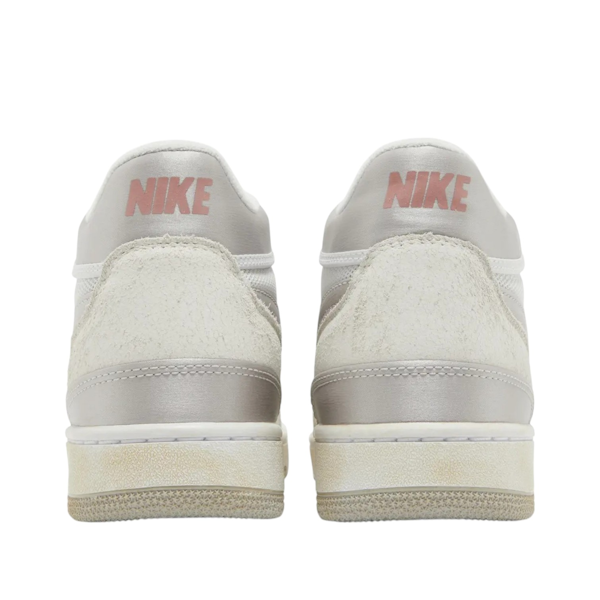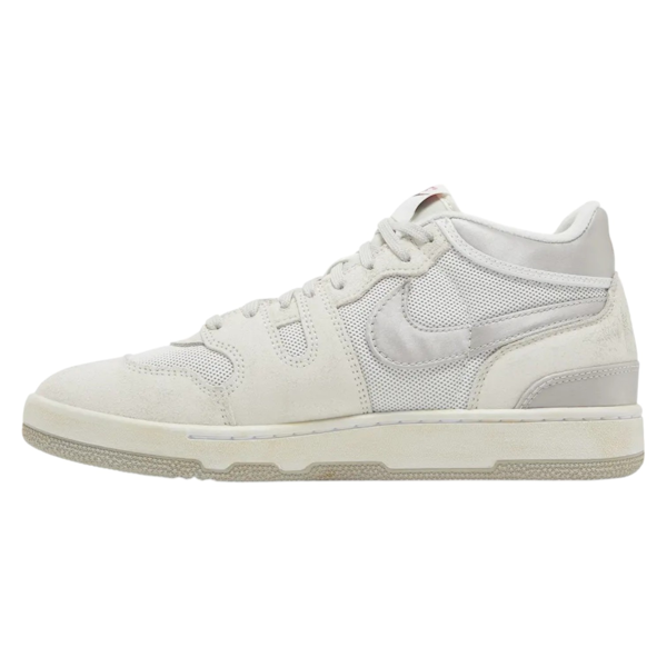 Las Mac Attack SP “Silver Linings” de Social Status x Nike marcan el comienzo de una serie de cuatro combinaciones de colores colaborativas centradas en la silueta de tenis de archivo. Este par presenta una paleta de colores refinada y neutra, realzada por una parte superior de malla blanca con superposiciones de cuero agrietado a tono. Con un sutil acabado plateado metalizado, la capa superior del Swoosh, el cuello y el contrafuerte están diseñados para desprenderse, revelando una base de chenilla en Red Stardust. Las etiquetas de la lengüeta, desparejadas, muestran las marcas Nike y Social Status, mientras que las plantillas personalizadas presentan un gráfico con una lista de las tiendas de Social Status. El acabado envejecido de la entresuela de goma evoca las raíces ochenteras de la zapatilla.