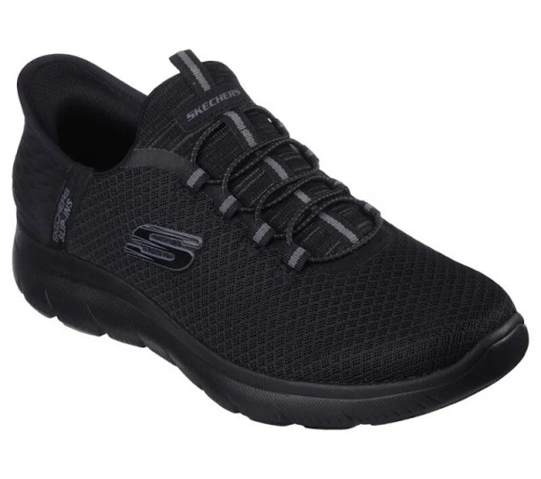 Disfruta de la comodidad de Skechers Hands Free Slip-ins™: Summits – High Range. Junto con nuestra exclusiva Heel Pillow™, que mantiene el pie en su sitio de forma segura, este modelo vegano cuenta con un exclusivo panel del talón moldeado Skechers Slip-ins™ emergente, una parte superior de malla con cordones fijos y una plantilla con amortiguación Skechers Air Cooled Memory Foam®.