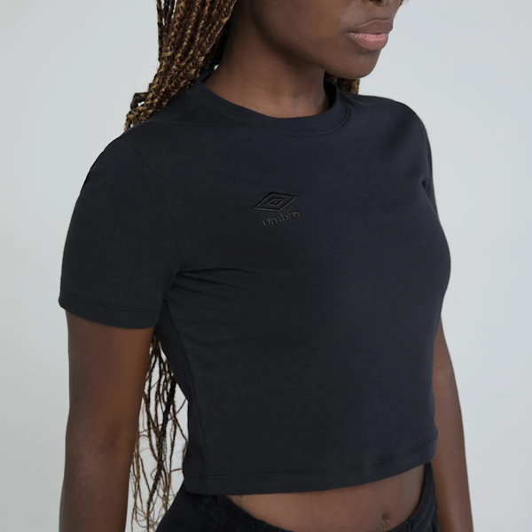 La camiseta cómoda esencial para mujer de Umbro es perfecta para un look moderno. Confeccionada en 100% algodón, la pieza tiene un diseño cropped que se ajusta al cuerpo, con mangas cortas, cuello redondo en canalé y el logo de la marca bordado tono sobre tono. ¡Ideal para crear looks atemporales y con estilo!