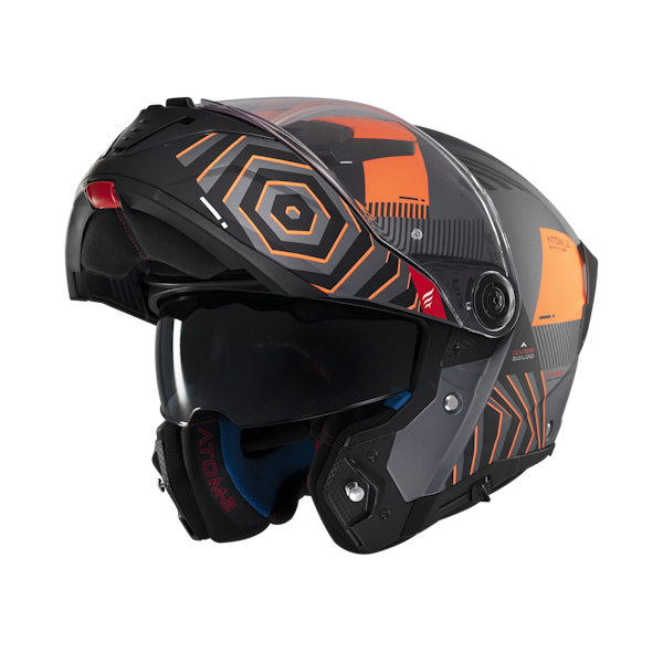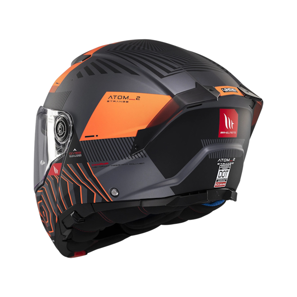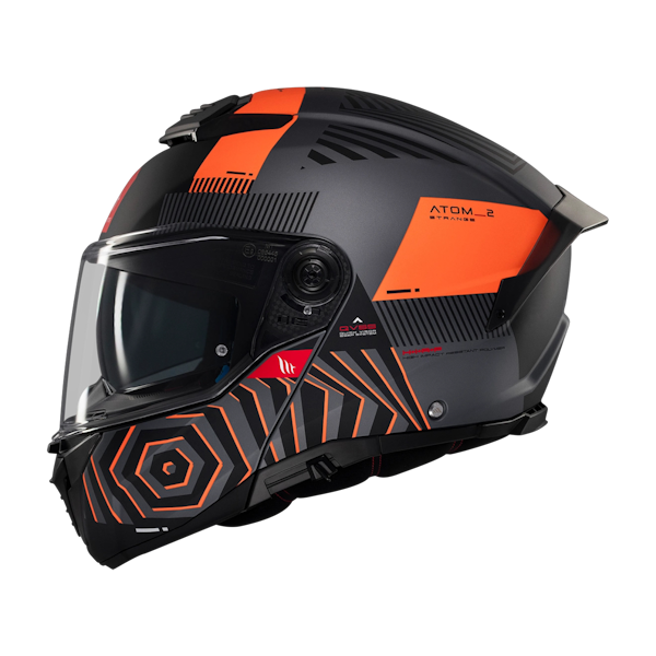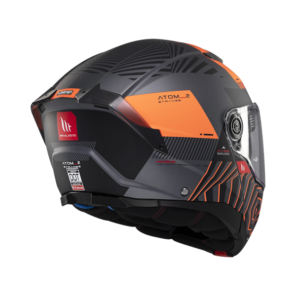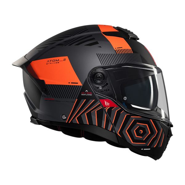 - El Atom 2 incorpora las últimas tecnologías de diseño desarrolladas por MT Helmets, incluyendo MT-RADD (Diseño de Resistencia Aerodinámica Reducida) y MT-AFCS (Sistema de Canal de Flujo de Aire).