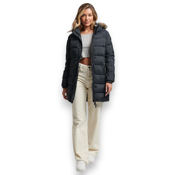 CHAQUETA DE PLUMÓN FEMENINO SUPERDRY VINTAGE CON CAPUCHA NEGRO