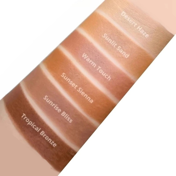 Colores disponibles: Desert Haze/ Sunlit Sand/ Warm Touch/ Sunset Sienna/ Sunrise Bliss/ Tropical Bronze