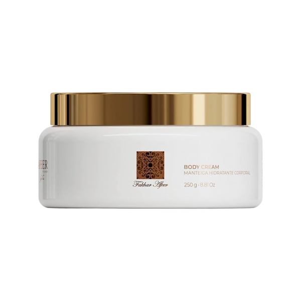Descubre la lujosa crema corporal hidratante Fakhar Rose, una experiencia sensorial única que combina una hidratación profunda con la delicada fragancia de rosas. Con su rica y cremosa fórmula, esta crema hidratante ofrece una larga duración para mantener tu piel nutrida y perfumada por más tiempo. El elegante envase con acabado dorado añade un toque de sofisticación a tu rutina diaria de cuidado de la piel. Ideal para todo tipo de piel, la crema proporciona una hidratación intensa, dejando la piel suave, sedosa y delicadamente perfumada. Su textura aterciopelada se absorbe fácilmente, sin dejar sensación pegajosa. Perfecta para el uso diario, esta lujosa crema corporal transformará tu rutina de cuidado de la piel en un momento verdaderamente especial, brindándote una experiencia de spa en la comodidad de tu hogar.