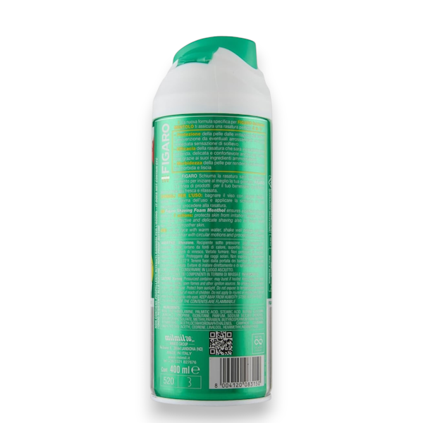 La espuma de afeitar Figaro Menthol es ideal para uso frecuente y está diseñada para proteger la piel de la irritación causada por la afeitadora, previniendo el enrojecimiento. Garantiza un afeitado eficaz e hidrata la piel. Proporciona una sensación de suavidad inmediata al deslizarse la cuchilla, facilitando un afeitado preciso y cuidadoso, incluso en barbas más resistentes, gracias a los emolientes presentes en su fórmula. La hidratación promueve la elasticidad de la piel, dejándola suave y tonificada. Producto dermatológicamente probado.