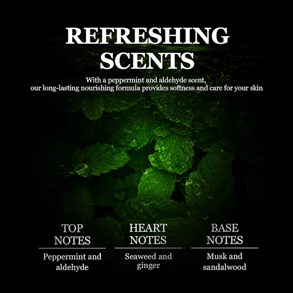 • Efectos: Limpieza profunda e hidratación, fuerte desodorante y antitranspirante, dejando la piel más hidratada.