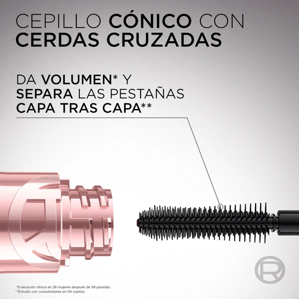 Conseguí una longitud y un volumen excepcionales. Descubrí el nuevo cepillo cónico cruzado y no te saltees ni una pestaña. Sus cerdas cubren las pestañas uniformemente, una a una, desde la raíz hasta la punta, para una intensidad modulable sin grumos.