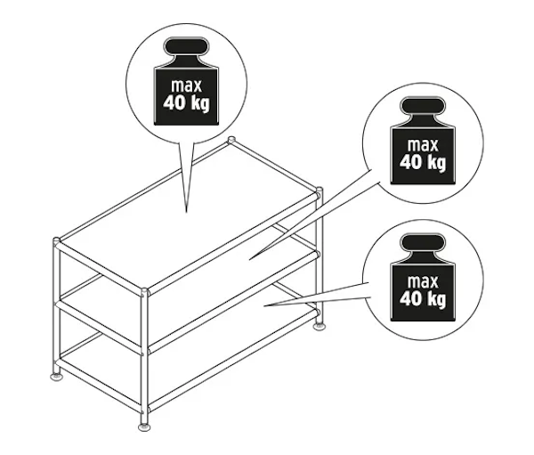 - Máx. 40 kg por estante