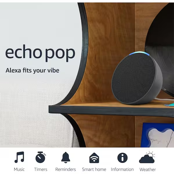 – Pídele a Alexa que ponga música, audiolibros y pódcast en tus proveedores favoritos como Amazon Music, Apple Music, Spotify, Pandora, Sirius XM y más. Conecta el Echo Pop por Bluetooth para reproducir contenido.