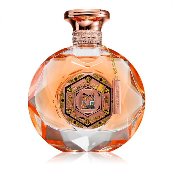En el corazón de este imperio olfativo, las notas solares, florales, de rosa y de nardo se despliegan como un jardín en plena floración, capturando la esencia de la magnética presencia de Cleopatra bajo el sol egipcio.