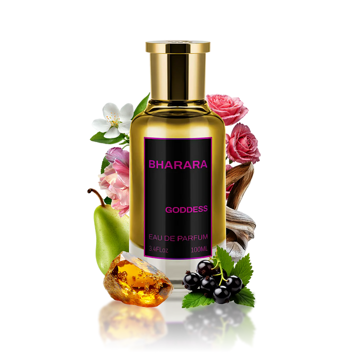 Bharara Goddess es una fragancia de la familia olfativa oriental floral para Mujeres. Goddess es un abrazo cálido que envuelve tu piel con la sofisticación de un comienzo luminoso y afrutado, donde la dulzura jugosa de la pera y la grosella negra se mezcla con la elegancia atemporal de la rosa.