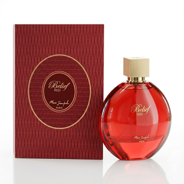 El perfume femenino Belief Red es una fragancia floral envolvente que combina la dulzura frutal de la grosella negra y el melocotón con un toque cítrico y caramelizado. Su corazón revela la elegancia del jazmín junto a la calidez del sándalo y matices especiados, mientras el fondo de ámbar y vainilla añade profundidad y sensualidad. Ideal para mujeres seguras que buscan un aroma sofisticado y duradero.