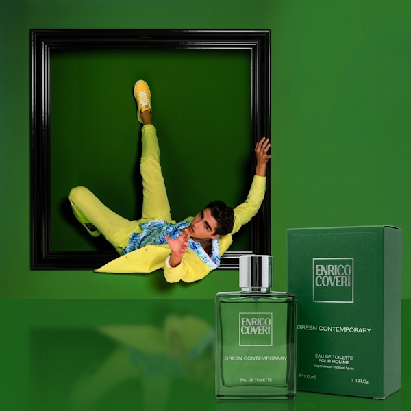 Green Contemporary es la nueva fragancia masculina que Enrico Coveri lanzó en 2022. Eau de Toilette con notas aromáticas y energizantes. Un clásico fougère masculino fruto de la colaboración entre la casa de esencias Firmenich y Elise Benat. El color verde del envase evoca la frescura de la fragancia y se realza con detalles en plata satinada luminosa.