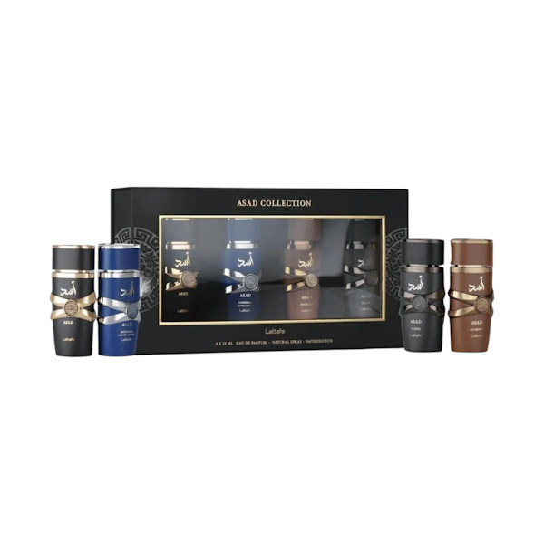 El Set Perfume Lattafa Asad Collection EDP reúne cuatro presentaciones en tamaño de viaje de una de las fragancias más icónicas de Lattafa. Con una estela intensa y cautivadora, cada miniatura concentra la esencia de la línea Asad. Ideal para quienes desean probar la fragancia, llevarla en el bolso o simplemente disfrutar de un set práctico y exclusivo, este kit garantiza una experiencia olfativa envolvente y de larga fijación en la piel.