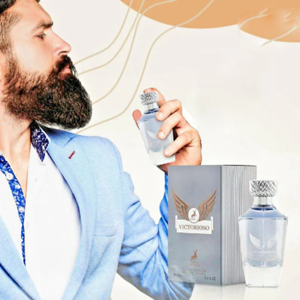 Victorioso combina elementos marinos vigorizantes con una base amaderada, creando una experiencia olfativa única. Esta fragancia es perfecta para quienes aprecian la elegancia y desean dejar una huella imborrable.