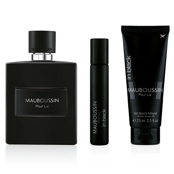 PERFUME MASCULINO MAUBOUSSIN POUR LUI IN BLACK EDP SET DE 4 PIEZAS