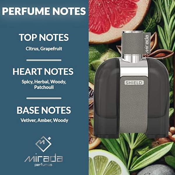 El perfume Shield de Mirada es una fragancia de la familia olfativa amaderada especiada para hombres.