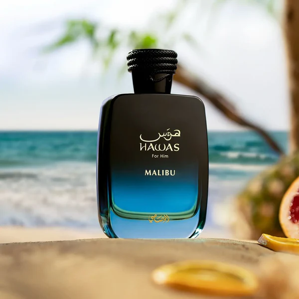 Hawas Malibu Eau de Parfum es una fragancia masculina que combina frescura tropical, cálidos tonos florales y ricos matices amaderados, ofreciendo un aroma audaz, sofisticado y moderno para el hombre contemporáneo.