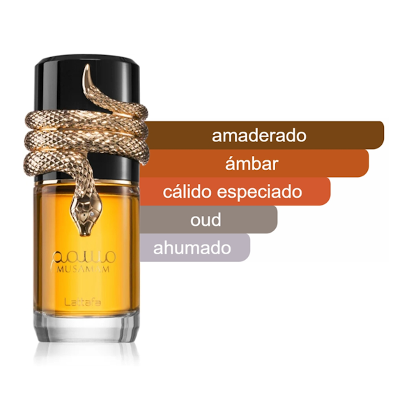 El perfume Musamam de Lattafa es una fragancia de la familia olfativa aromática amaderada para mujeres y hombres. Con una concentración del tipo Parfum, ofrece una intensidad aromática excepcional y una duración prolongada en la piel. Sus notas están compuestas por los siguientes ingredientes.