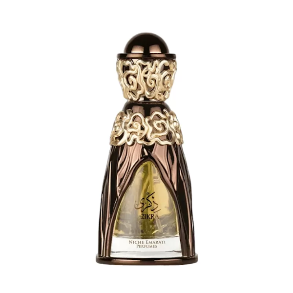 Zikra se abre con la embriagadora y opulenta nota de coñac. Esta rica y aromática nota crea el ambiente con su cálida y acogedora esencia, cautivando al instante los sentidos y evocando una sensación de lujo. A medida que la fragancia evoluciona, el corazón revela una lujosa mezcla de canela, haba tonka y musgo de roble. La cálida y especiada canela se combina a la perfección con la dulce y ligeramente picante esencia del haba tonka y la terrosa y verde profundidad del musgo de roble. Esta armoniosa combinación añade profundidad y sofisticación a la composición, creando un corazón cautivador. En la base, Zikra deja una huella imborrable con su rica y reconfortante mezcla de praliné, vainilla y sándalo. El praliné aporta una deliciosa nota dulce y a nuez, mientras que la vainilla proporciona una cremosa y dulce riqueza. El sándalo imparte una base suave y amaderada, creando un final profundo y memorable que perdura en la piel.