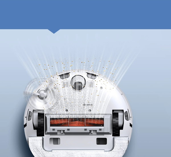 El diseño de recogida de polvo de dos canales de la base, con su potente succión de 17 000 Pa, vacía el depósito de polvo al instante. La bolsa para el polvo integrada puede recoger y vaciar el polvo más de 60 veces y se sella automáticamente al recogerlo para que ni tú ni el entorno acabéis cubiertos de polvo.
