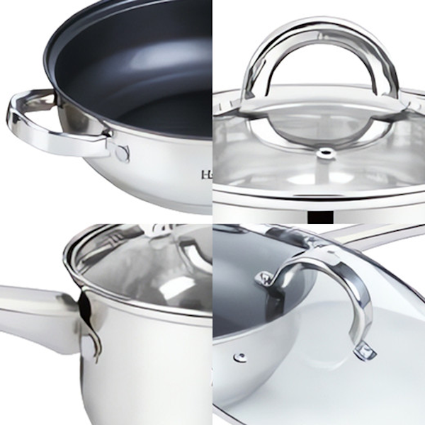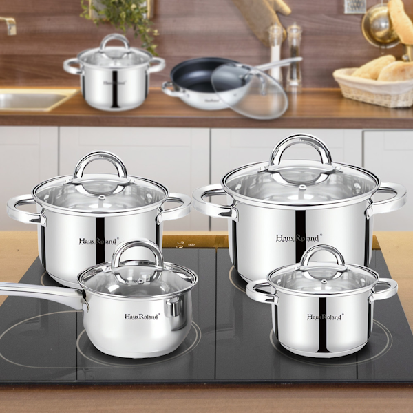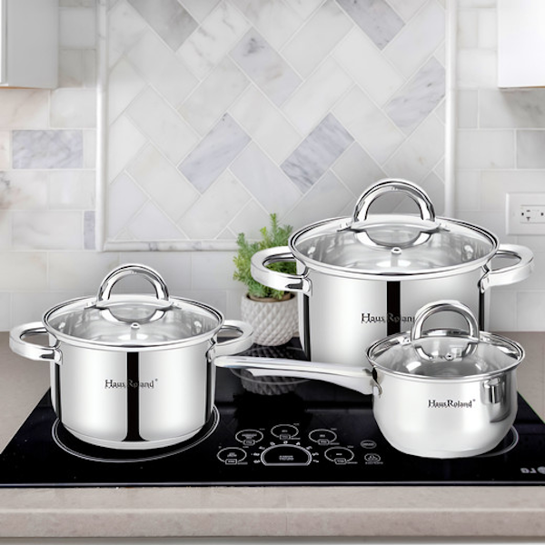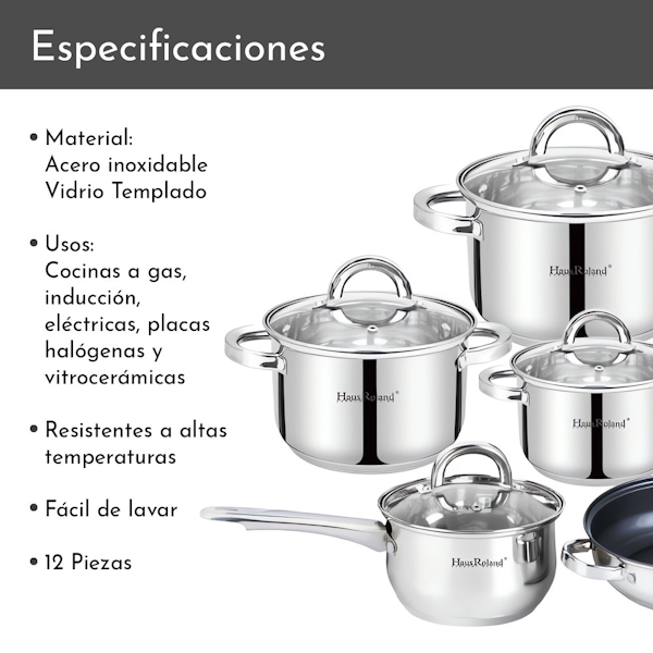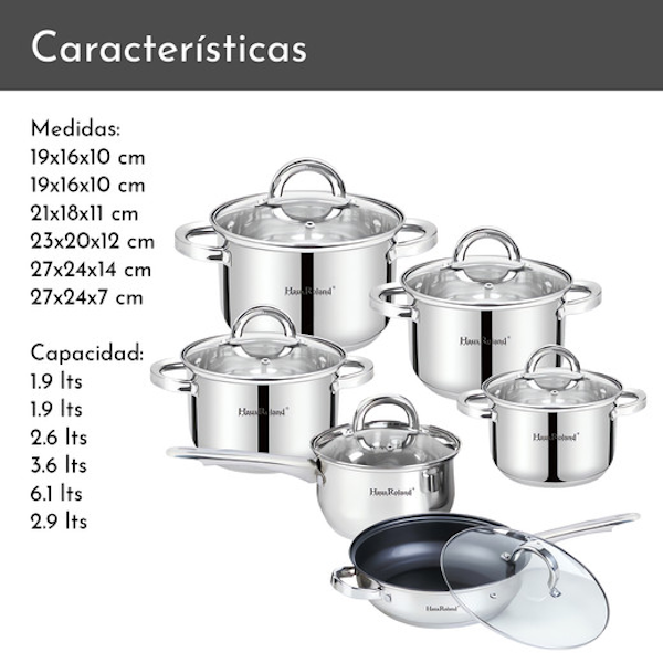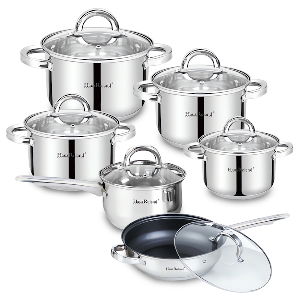 SET DE OLLAS HAUS ROLAND HR101-2 DE ACERO INOXIDABLE CON TAPA 12 PIEZAS