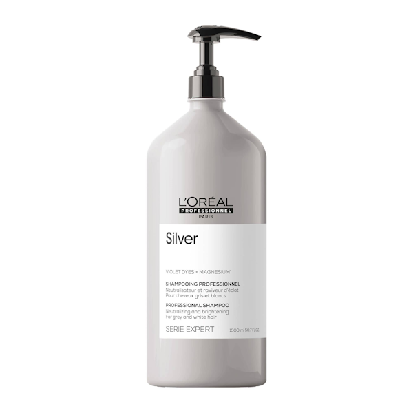 El cabello gris y blanco merece lucir radiante sin que los tonos amarillentos le roben protagonismo. El champú Serie Expert Silver ofrece una neutralización de calidad profesional que transforma los tonos apagados y cobrizos en un plateado brillante y frío. Formulado con pigmentos violetas y magnesio, este champú de confianza en salones de belleza limpia a la vez que deposita pigmentos violetas que contrarrestan los tonos cálidos no deseados, dejando tu cabello gris o blanco natural con un aspecto vibrante y luminoso. Este formato de 1500 ml, ideal para uso profesional, ofrece una excelente relación calidad-precio tanto para usuarios habituales como para profesionales.