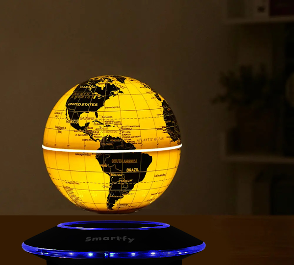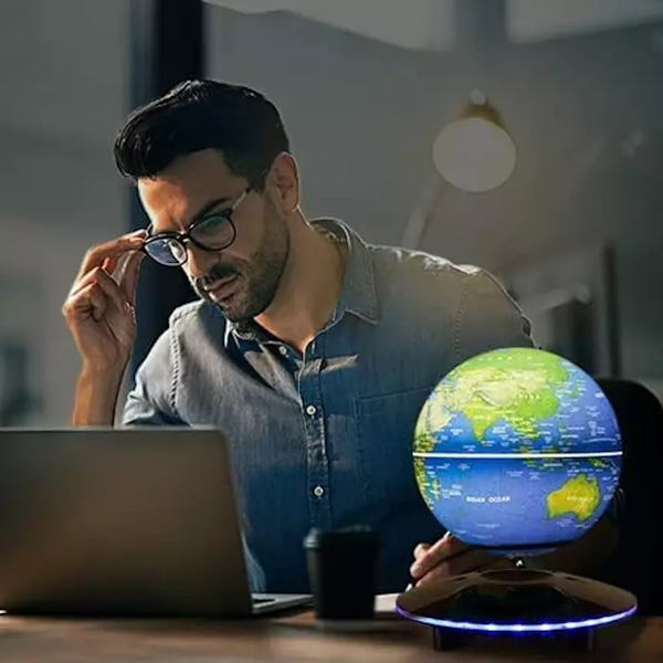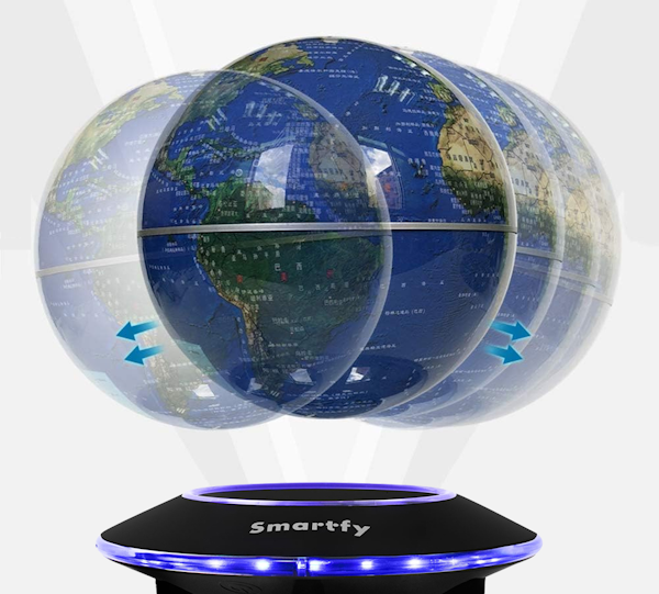 El globo cuenta con un mecanismo de levitación magnética que le permite mantenerse suspendido en el aire y girar de manera continua sin necesidad de contacto físico con la base. Este efecto de rotación de 360 grados no solo le da un aspecto futurista y dinámico, sino que también permite visualizar cualquier parte del mapa con facilidad.