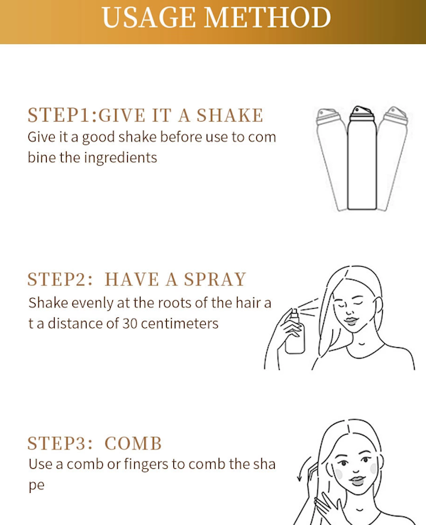 Pulverizar sobre el cabello limpio y húmedo, desde unos 15 cm de distancia.