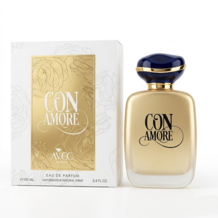 CON AMORE Es una fragancia que captura la esencia de la pasión y el romance en cada nota. Con un