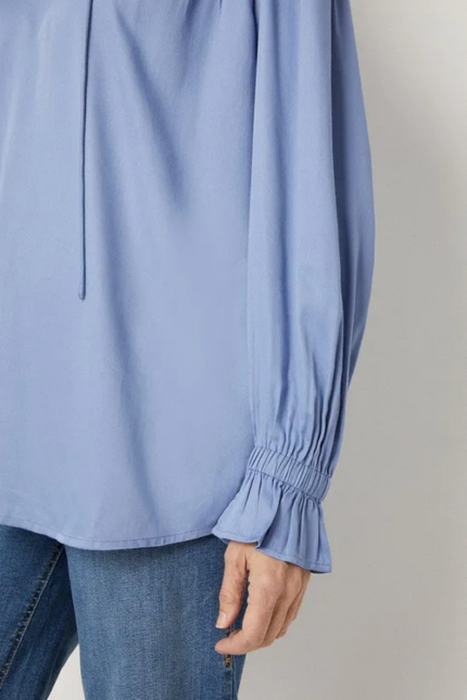 BYY05514 Descripción Tejido de viscosa suave y fluido con un acabado liso Corte holgado con mangas largas de obispo El