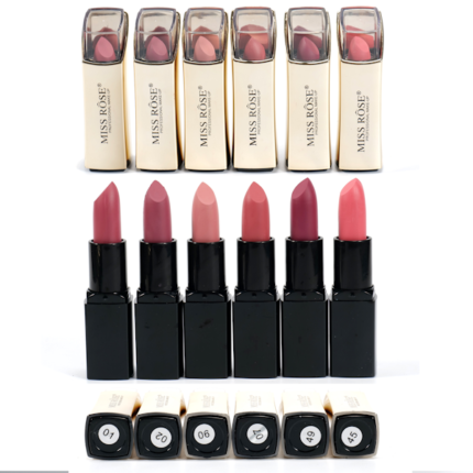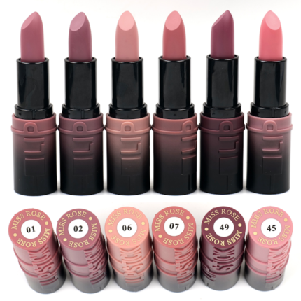 El Miss Rose Baton Stick Matte es un labial en barra diseñado para ofrecer un acabado mate elegante con comodidad