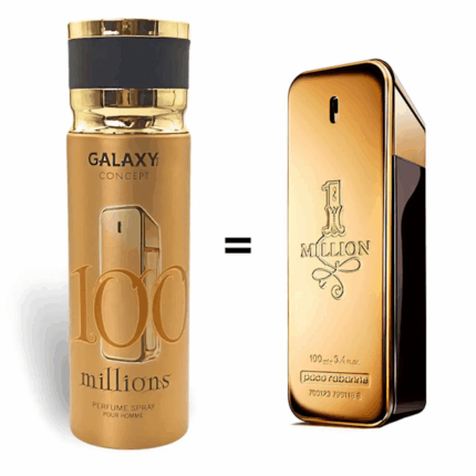 100 MILLIONS Galaxy Concept 100 Millions es un body spray corporal masculino de origen árabe, diseñado para ofrecer una fragancia